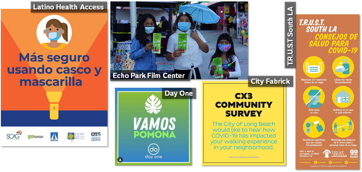 Our co-branding partnerships supported traffic safety messaging, education, and encouragement across the SCAG region, through a regional advertising campaign, targeting High-Injury Network and Disadvantaged Communities. In 2020, Go Human: