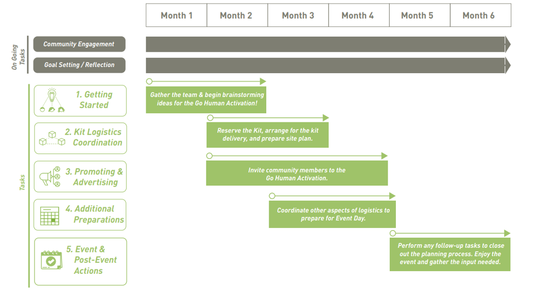 Reach out to community members with invitations to collaborate and participate. Outreach to community members regarding the Go Human Activation is critical to cultivating engagement. Develop communication strategies and promotional materials to assist in producing successful advertisements.